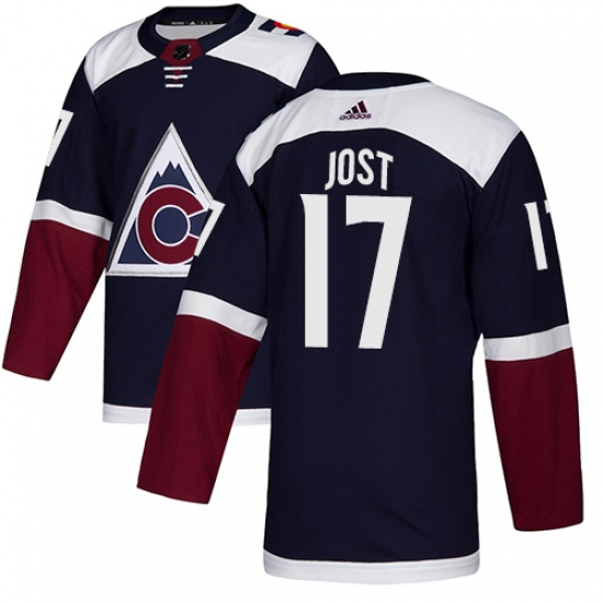 Men's Adidas Colorado Avalanche #17 Tyson Jost Premier Navy Blue Alternate NHL Jersey