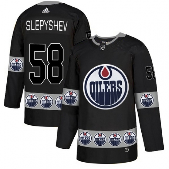 Men's Adidas Edmonton Oilers #58 Anton Slepyshev Authentic Black Team Logo Fashion NHL Jersey