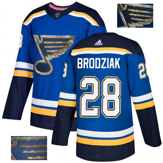 Men's Adidas St. Louis Blues #28 Kyle Brodziak Authentic Royal Blue Fashion Gold NHL Jersey
