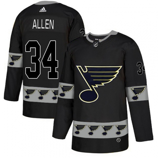 Men's Adidas St. Louis Blues #34 Jake Allen Authentic Black Team Logo Fashion NHL Jersey