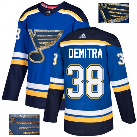 Men's Adidas St. Louis Blues #38 Pavol Demitra Authentic Royal Blue Fashion Gold NHL Jersey