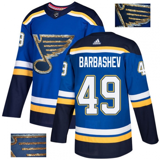 >Men's Adidas St. Louis Blues #49 Ivan Barbashev Authentic Royal Blue Fashion Gold NHL Jersey