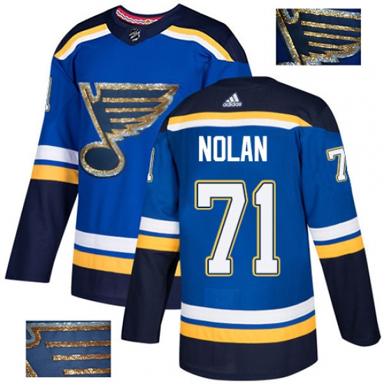 Men's Adidas St. Louis Blues #71 Jordan Nolan Authentic Royal Blue Fashion Gold NHL Jersey