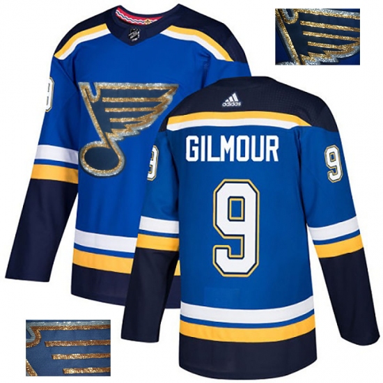 Men's Adidas St. Louis Blues #9 Doug Gilmour Authentic Royal Blue Fashion Gold NHL Jersey