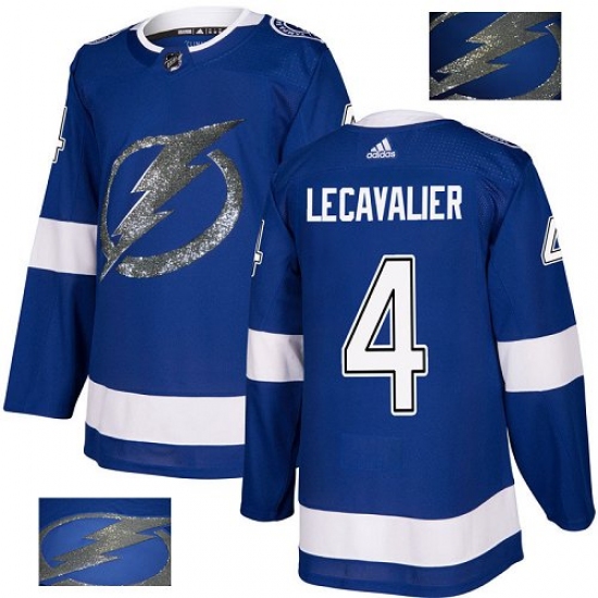 Men's Adidas Tampa Bay Lightning #4 Vincent Lecavalier Authentic Royal Blue Fashion Gold NHL Jersey