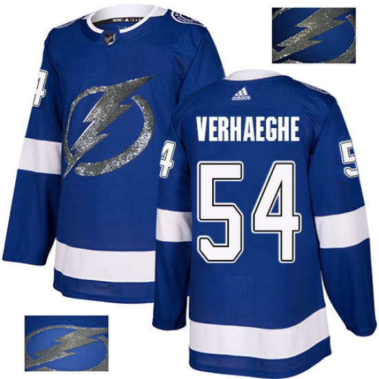 Men's Adidas Tampa Bay Lightning #54 Carter Verhaeghe Authentic Royal Blue Fashion Gold NHL Jersey