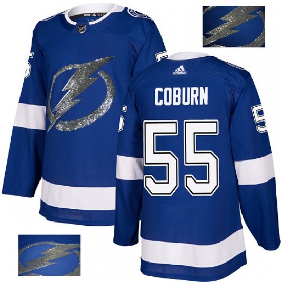 Men's Adidas Tampa Bay Lightning #55 Braydon Coburn Authentic Royal Blue Fashion Gold NHL Jersey