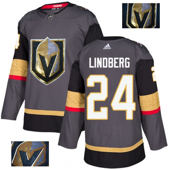 >Men's Adidas Vegas Golden Knights #24 Oscar Lindberg Authentic Gray Fashion Gold NHL Jersey