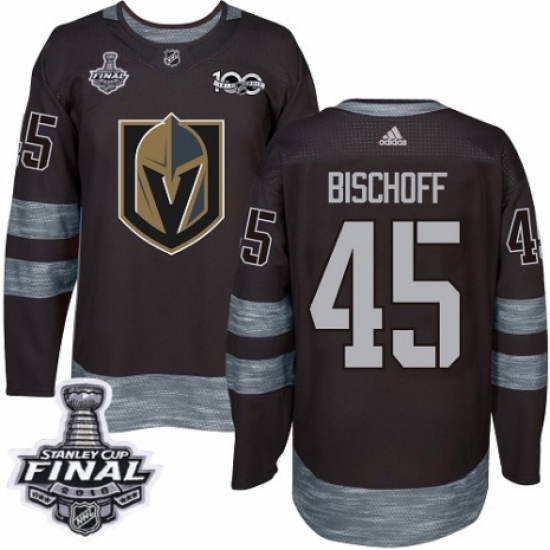 Men's Adidas Vegas Golden Knights #45 Jake Bischoff Authentic Black 1917-2017 100th Anniversary 2018 Stanley Cup Final NHL Jersey