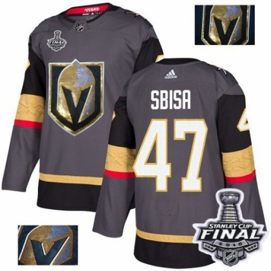 Men's Adidas Vegas Golden Knights #47 Luca Sbisa Authentic Gray Fashion Gold 2018 Stanley Cup Final NHL Jersey