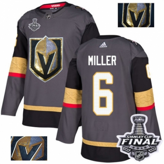 Men's Adidas Vegas Golden Knights #6 Colin Miller Authentic Gray Fashion Gold 2018 Stanley Cup Final NHL Jersey