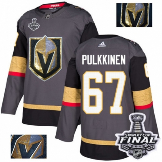 >Men's Adidas Vegas Golden Knights #67 Teemu Pulkkinen Authentic Gray Fashion Gold 2018 Stanley Cup Final NHL Jersey