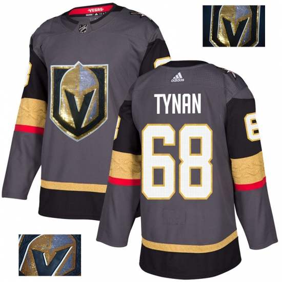 >Men's Adidas Vegas Golden Knights #68 T.J. Tynan Authentic Gray Fashion Gold NHL Jersey
