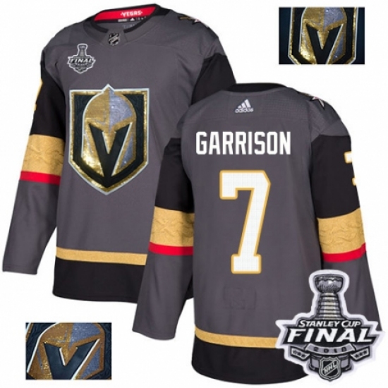 Men's Adidas Vegas Golden Knights #7 Jason Garrison Authentic Gray Home 2018 Stanley Cup Final NHL Jersey