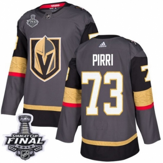 Men's Adidas Vegas Golden Knights #73 Brandon Pirri Authentic Gray Home 2018 Stanley Cup Final NHL Jersey