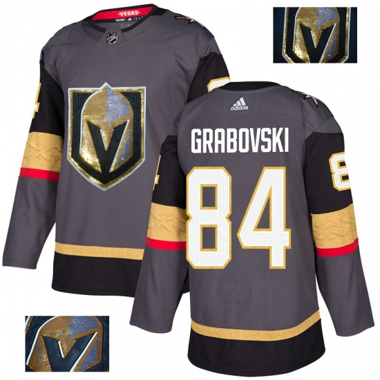 >Men's Adidas Vegas Golden Knights #84 Mikhail Grabovski Authentic Gray Fashion Gold NHL Jersey