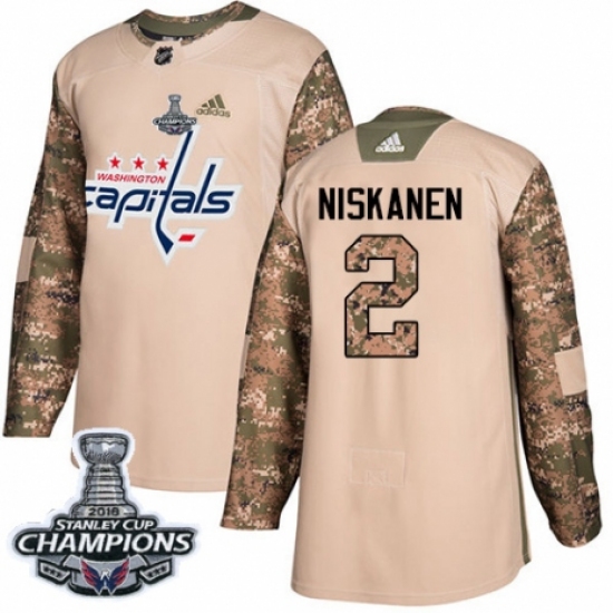 >Men's Adidas Washington Capitals #2 Matt Niskanen Authentic Camo Veterans Day Practice 2018 Stanley Cup Final Champions NHL Jersey