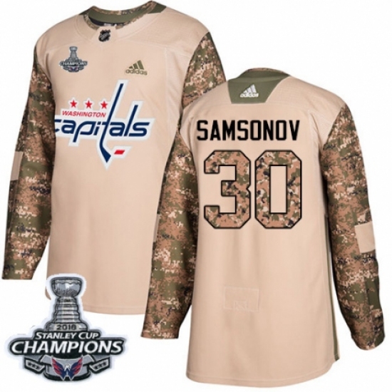 Men's Adidas Washington Capitals #30 Ilya Samsonov Authentic Camo Veterans Day Practice 2018 Stanley Cup Final Champions NHL Jersey