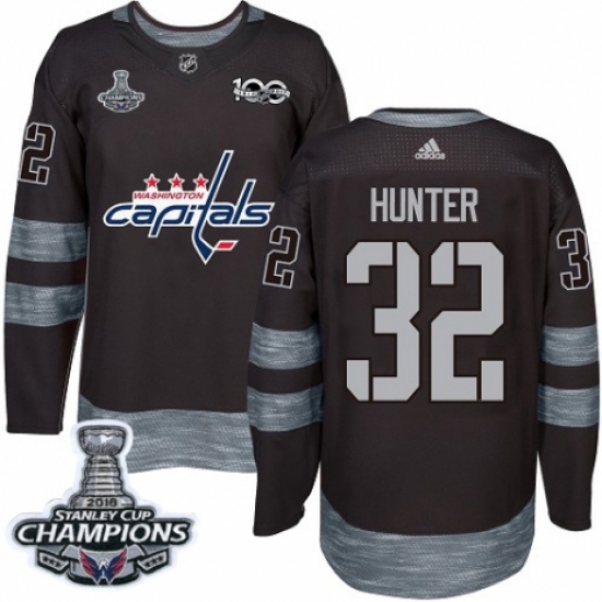Men's Adidas Washington Capitals #32 Dale Hunter Authentic Black 1917-2017 100th Anniversary 2018 Stanley Cup Final Champions NHL Jersey