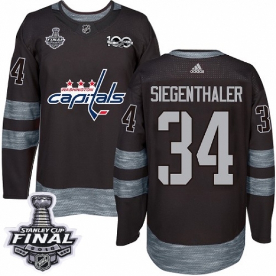Men's Adidas Washington Capitals #34 Jonas Siegenthaler Authentic Black 1917-2017 100th Anniversary 2018 Stanley Cup Final NHL Jersey