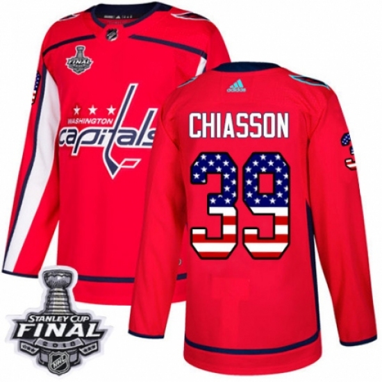Men's Adidas Washington Capitals #39 Alex Chiasson Authentic Red USA Flag Fashion 2018 Stanley Cup Final NHL Jersey