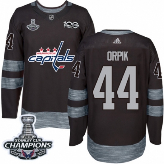 >Men's Adidas Washington Capitals #44 Brooks Orpik Authentic Black 1917-2017 100th Anniversary 2018 Stanley Cup Final Champions NHL Jersey