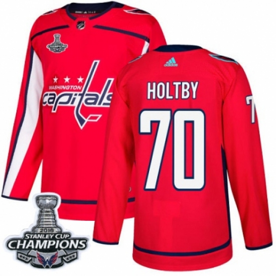 Men's Adidas Washington Capitals #70 Braden Holtby Authentic Red Home 2018 Stanley Cup Final Champions NHL Jersey