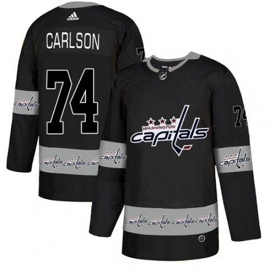>Men's Adidas Washington Capitals #74 John Carlson Authentic Black Team Logo Fashion NHL Jersey