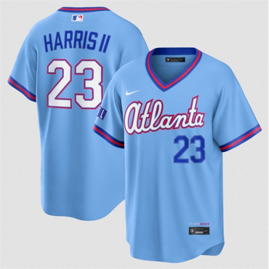 Home>MLB>Atlanta Braves>Michael Harris II>Men's Atlanta Braves #23 Michael Harris II Powder Blue 2026 City Connect Stadium Stitched Baseball Jersey