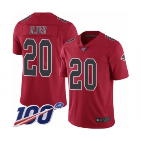 Men's Atlanta Falcons #20 Isaiah Oliver Limited Red Rush Vapor Untouchable 100th Season Football Jersey