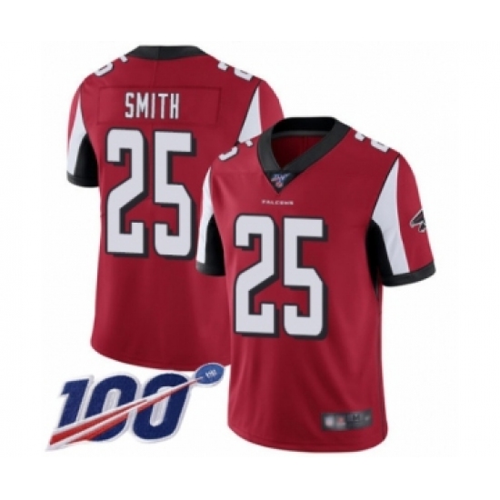 >Men's Atlanta Falcons #25 Ito Smith Red Team Color Vapor Untouchable Limited Player 100th Season Football Jersey