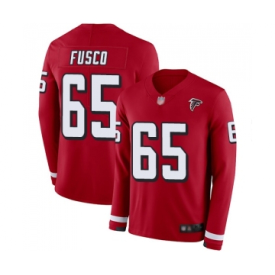 >Men's Atlanta Falcons #65 Brandon Fusco Limited Red Therma Long Sleeve Football Jersey