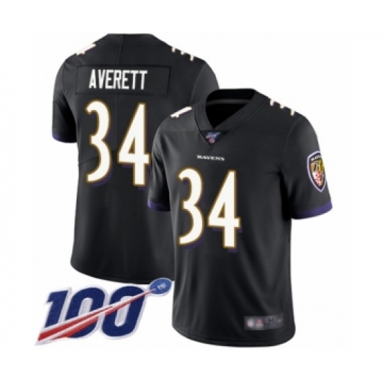 Men's Baltimore Ravens #34 Anthony Averett Black Alternate Vapor Untouchable Limited Player 100th Season Football Jersey