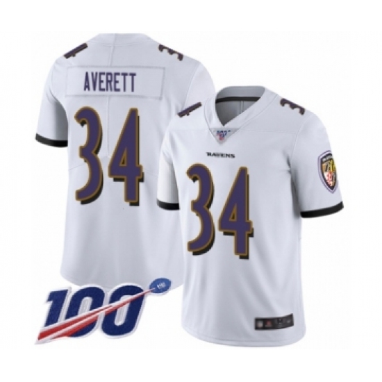 Men's Baltimore Ravens #34 Anthony Averett White Vapor Untouchable Limited Player 100th Season Football Jersey