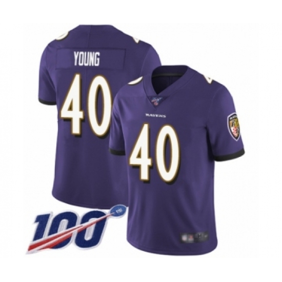 Men's Baltimore Ravens #40 Kenny Young Purple Team Color Vapor Untouchable Limited Player 100th Season Football Jersey