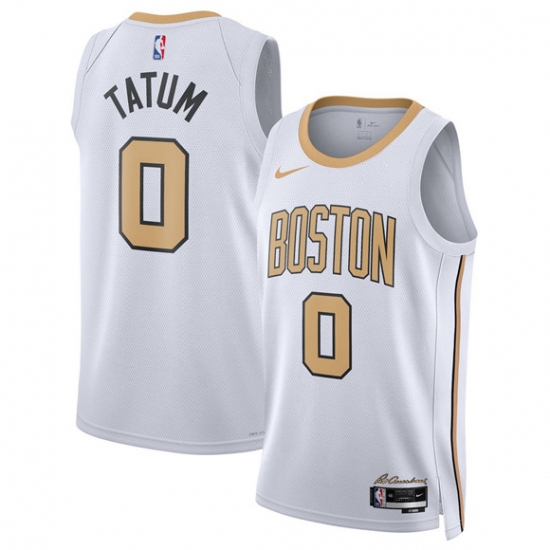 Men's Boston Celtics #0 Jayson Tatum White 2024 Finals Champions City Edition Stitched Basketball Jersey