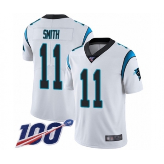 >Men's Carolina Panthers #11 Torrey Smith White Vapor Untouchable Limited Player 100th Season Football Jersey
