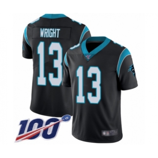 >Men's Carolina Panthers #13 Jarius Wright Black Team Color Vapor Untouchable Limited Player 100th Season Football Jersey