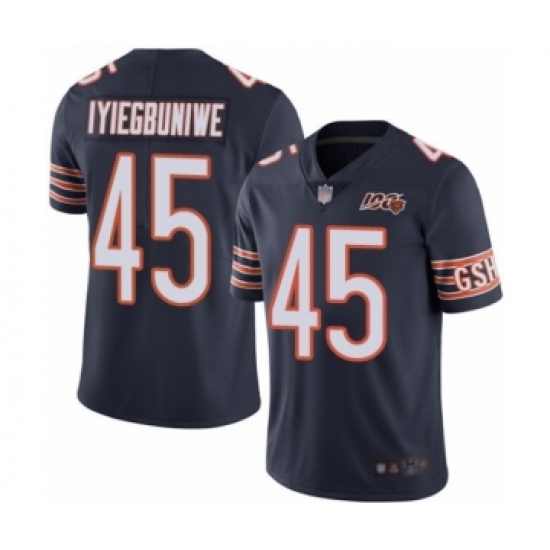 >Men's Chicago Bears #45 Joel Iyiegbuniwe Navy Blue Team Color 100th Season Limited Football Jersey