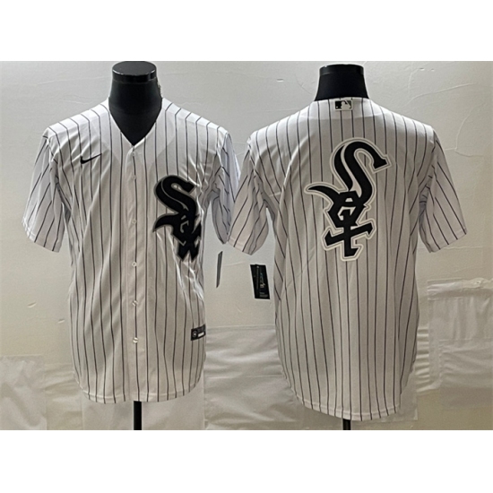 >Men's Chicago White Sox White Team Big Logo Cool Base Stitched JerseyS