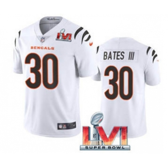 Men's Cincinnati Bengals #30 Jessie Bates III 2022 White Super Bowl LVI Vapor Limited Stitched Jersey