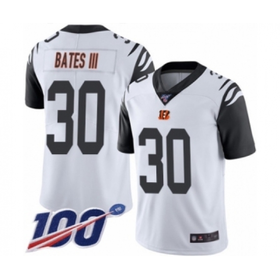 >Men's Cincinnati Bengals #30 Jessie Bates III Limited White Rush Vapor Untouchable 100th Season Football Jersey