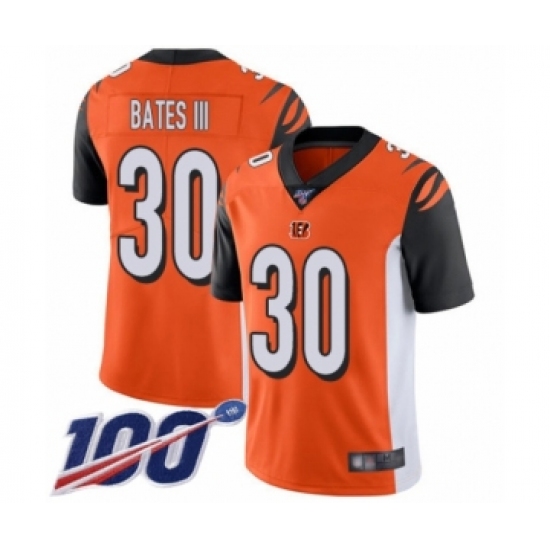 >Men's Cincinnati Bengals #30 Jessie Bates III Orange Alternate Vapor Untouchable Limited Player 100th Season Football Jersey