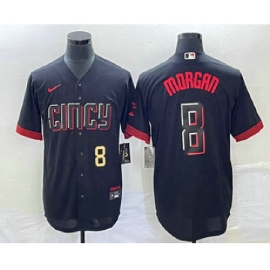 Men's Cincinnati Reds #8 Joe Morgan Black 2023 City Connect Cool Base Stitched Jersey