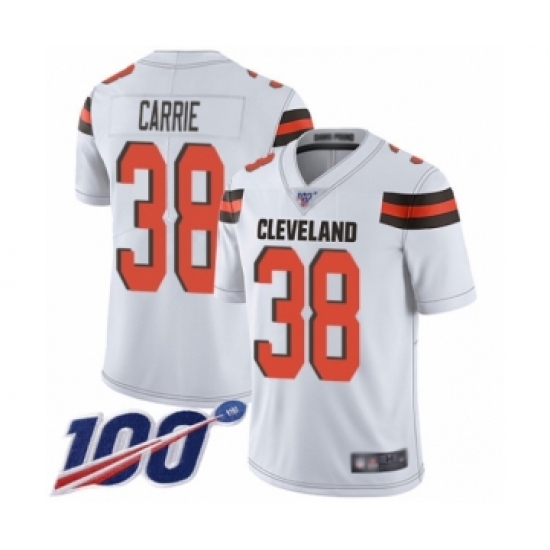 >Men's Cleveland Browns #38 T. J. Carrie White Vapor Untouchable Limited Player 100th Season Football Jersey
