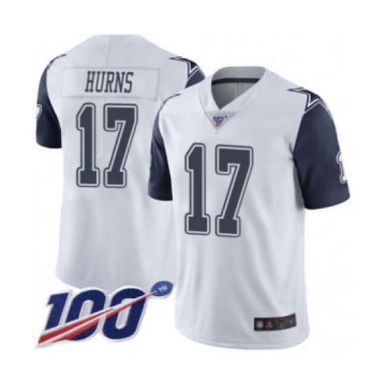 >Men's Dallas Cowboys #17 Allen Hurns Limited White Rush Vapor Untouchable 100th Season Football Jersey