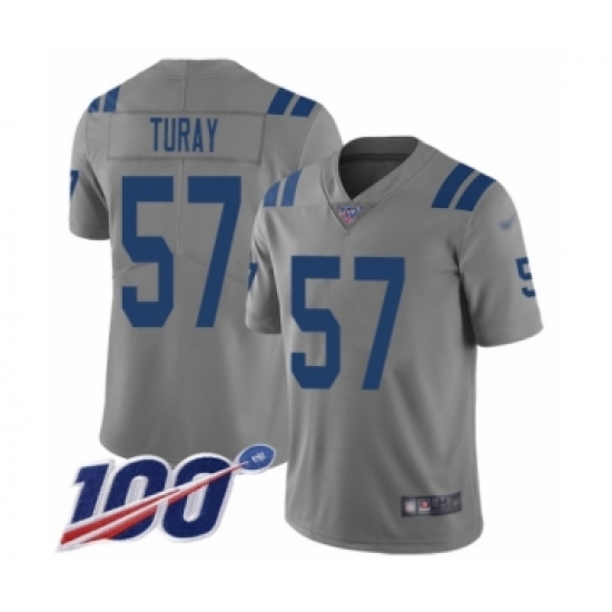 >Men's Indianapolis Colts #57 Kemoko Turay Limited Gray Inverted Legend 100th Season Football Jersey