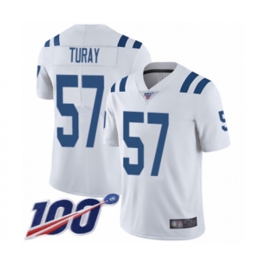 >Men's Indianapolis Colts #57 Kemoko Turay White Vapor Untouchable Limited Player 100th Season Football Jersey