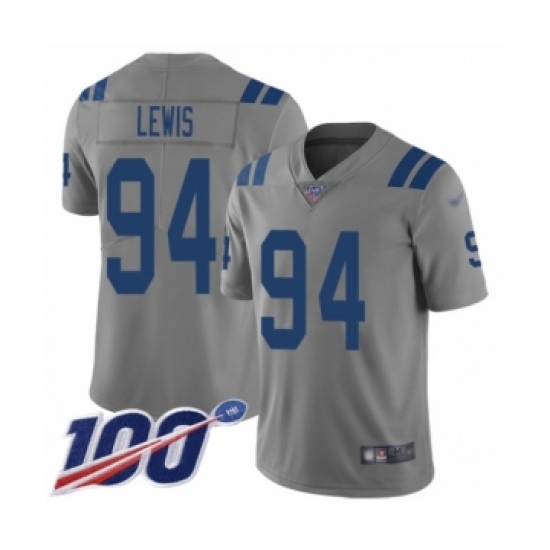 >Men's Indianapolis Colts #94 Tyquan Lewis Limited Gray Inverted Legend 100th Season Football Jersey
