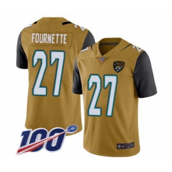 >Men's Jacksonville Jaguars #27 Leonard Fournette Limited Gold Rush Vapor Untouchable 100th Season Football Jersey